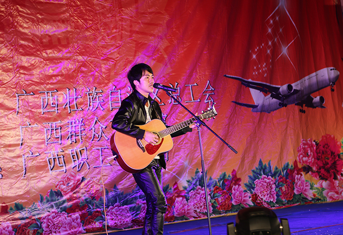 當(dāng)晚,一曲《唱著山歌等你來(lái)》拉開了演出序幕……優(yōu)美的舞蹈、詼諧幽默的小品、變化莫測(cè)的魔術(shù)、精彩絕倫的雜技等節(jié)目,多種表演形式藝術(shù)地展現(xiàn)了廣大職工誠(chéng)實(shí)勞動(dòng)、勤奮勞動(dòng)、創(chuàng)新勞動(dòng)的時(shí)代風(fēng)采,奏響了“勞動(dòng)美”時(shí)代主旋律。工地小伙也走上舞臺(tái),吉他彈唱《曾經(jīng)的你》展現(xiàn)了廣西新發(fā)展人樂(lè)于奉獻(xiàn)、克難攻堅(jiān)的時(shí)代風(fēng)采。整場(chǎng)慰問(wèn)演出歷時(shí)80分鐘,贏得現(xiàn)場(chǎng)觀眾的陣陣掌聲、歡呼聲和喝彩聲,一次又一次把氣氛推向高潮。