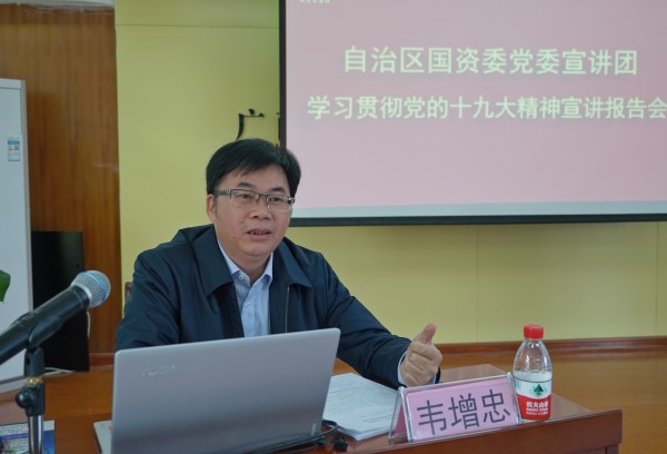 圖為韋增忠主席在集團(tuán)公司都巴高速項(xiàng)目宣講黨的十九大精神